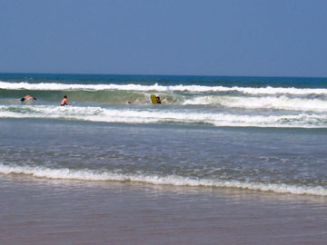 the temptation. Below, others enjoy a dip in the ocean and a bit of